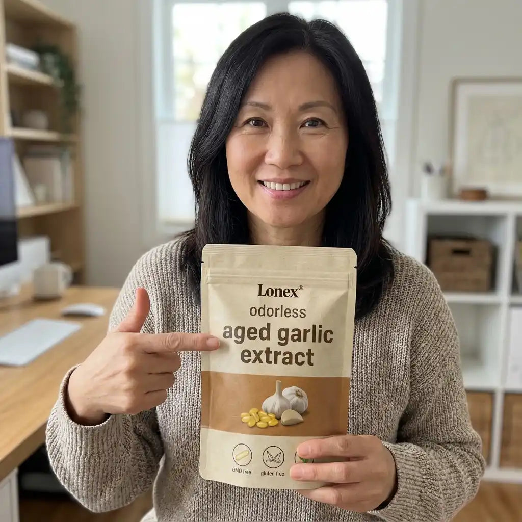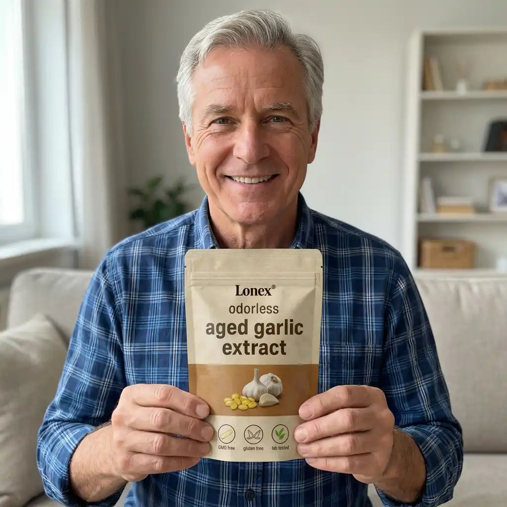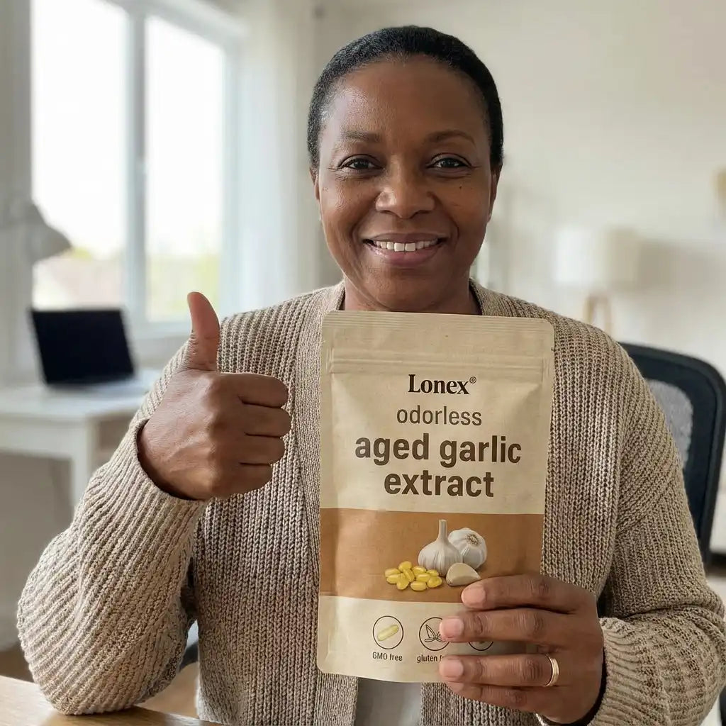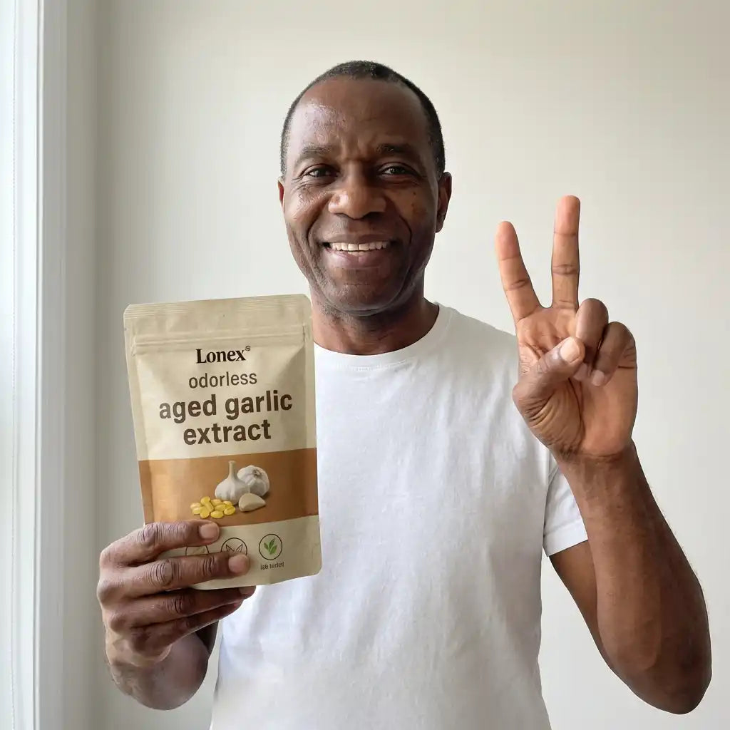 Lonex® uses odorless, slow-aged garlic extract designed for daily cardiovascular, immune, and antioxidant support. Backed by decades of scientific research.