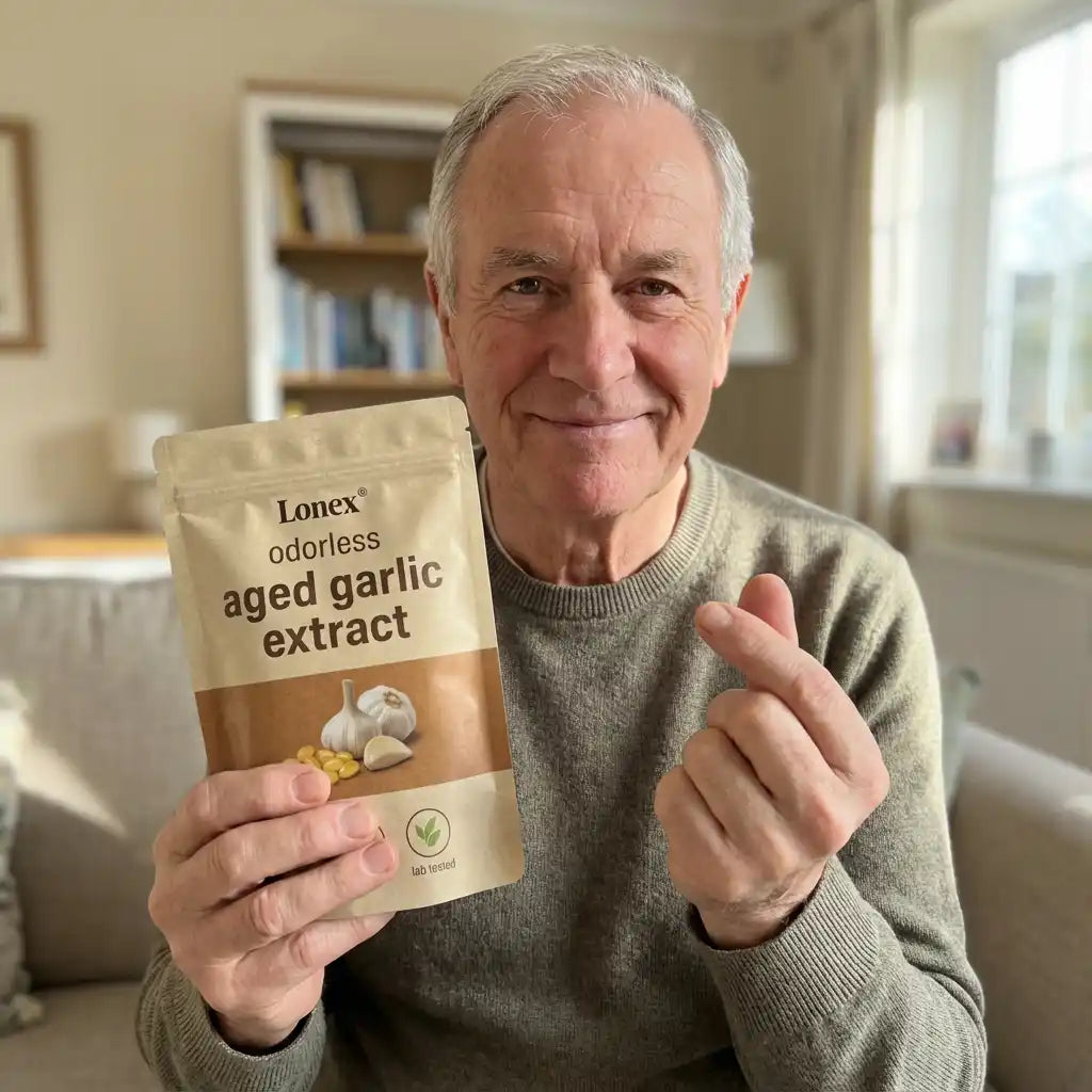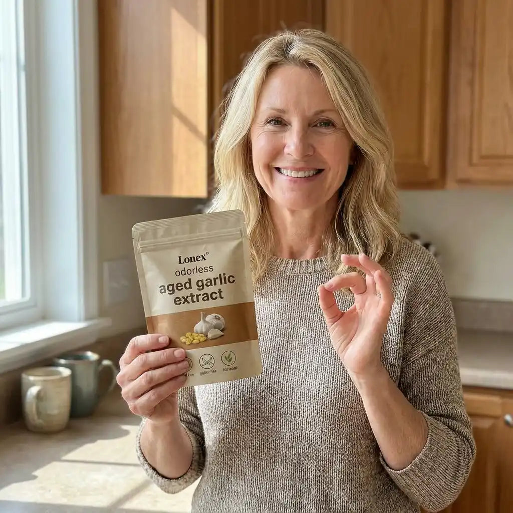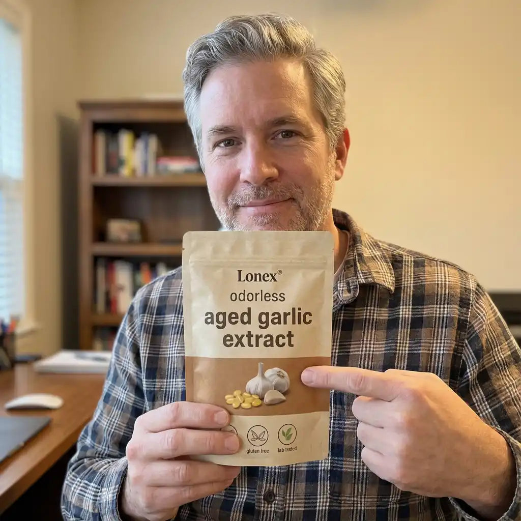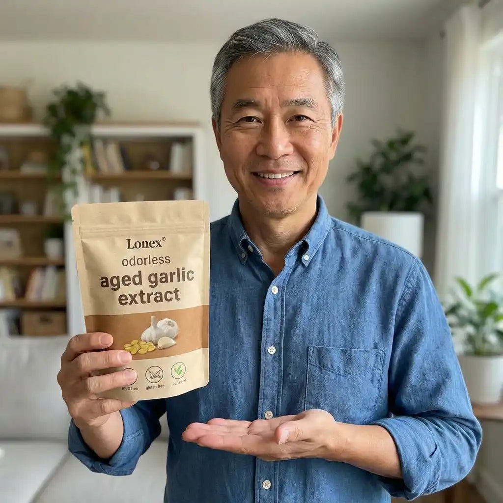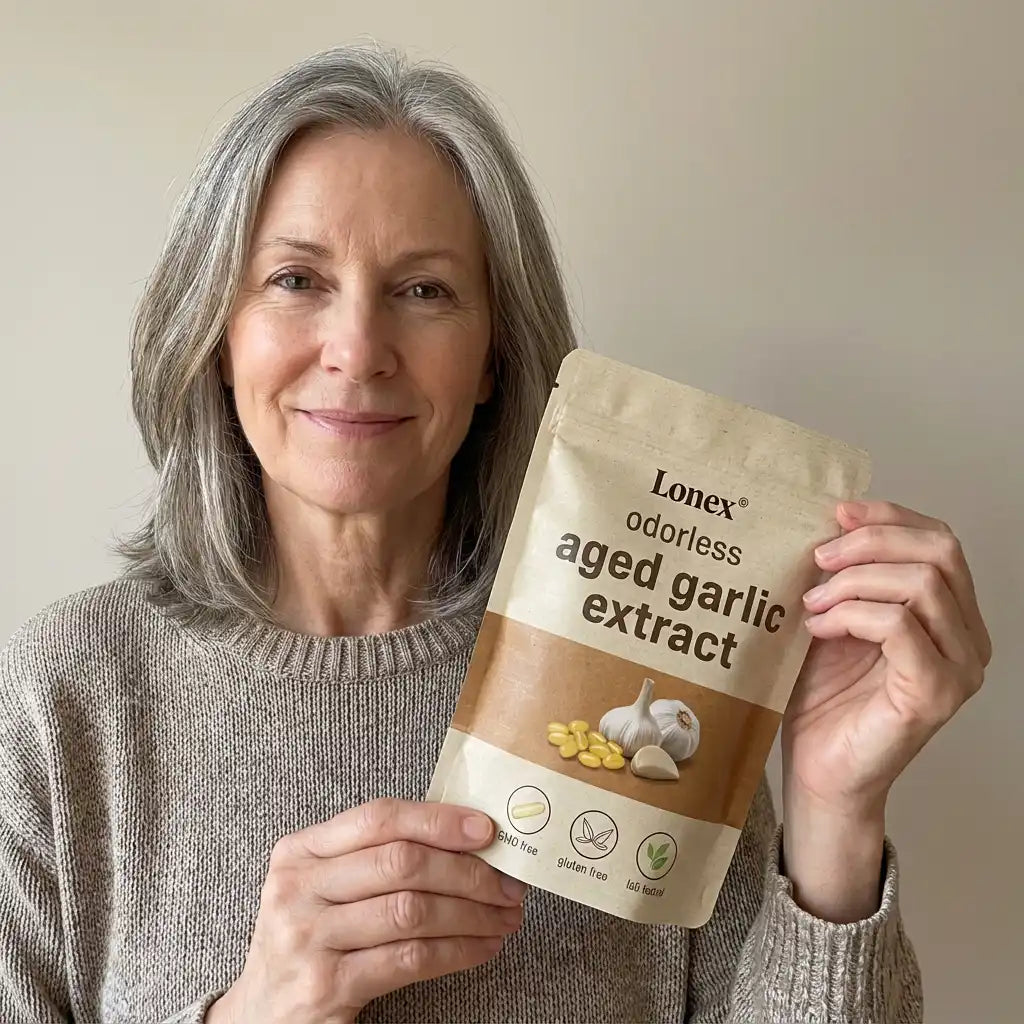 Lonex® uses odorless, slow-aged garlic extract designed for daily cardiovascular, immune, and antioxidant support. Backed by decades of scientific research.