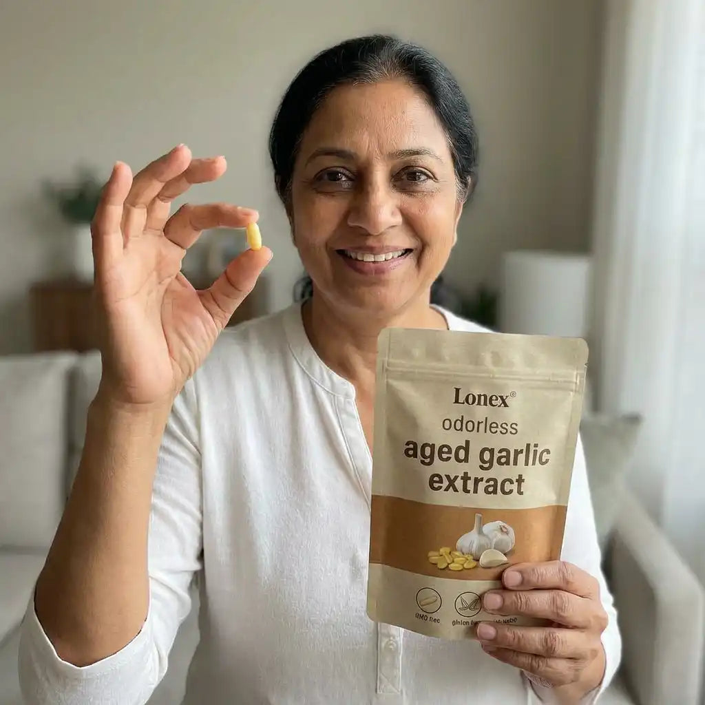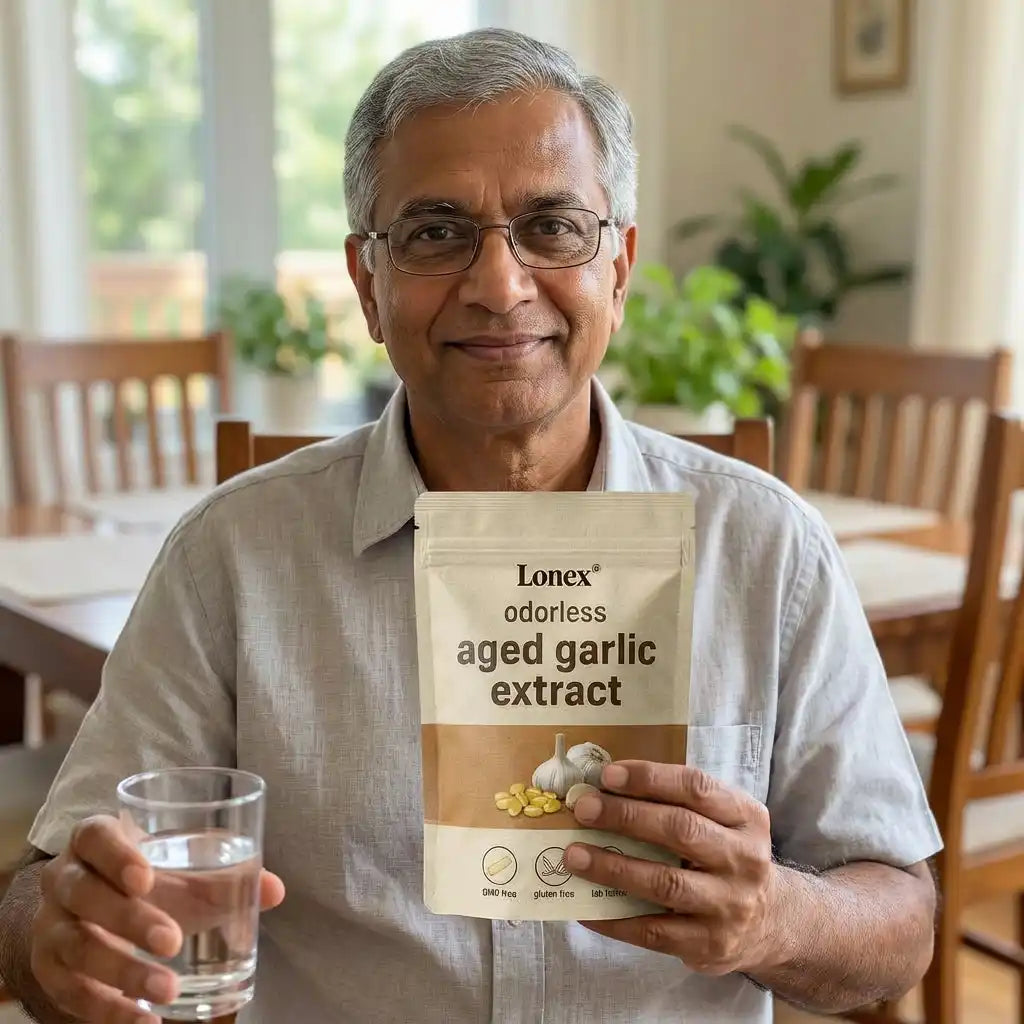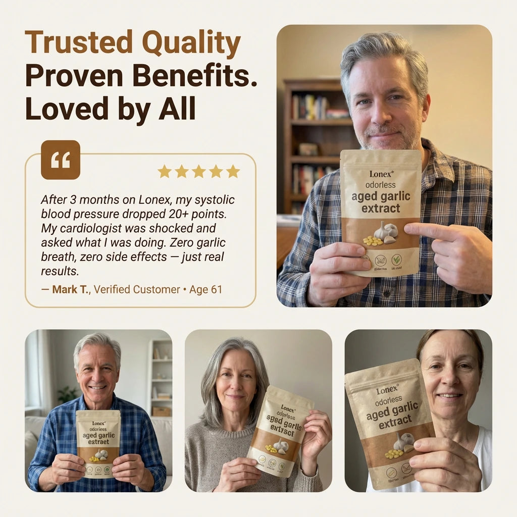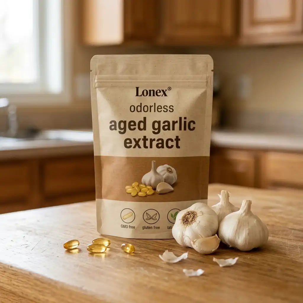 Lonex® uses odorless, slow-aged garlic extract designed for daily cardiovascular, immune, and antioxidant support. Backed by decades of scientific research.